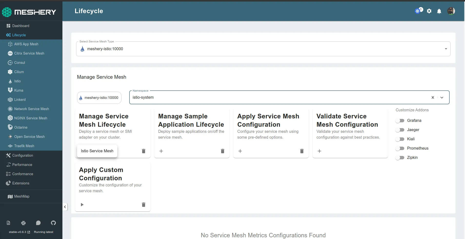 Now that we have a Kubernetes cluster and Meshery, we are ready to download and deploy Istio resources.
